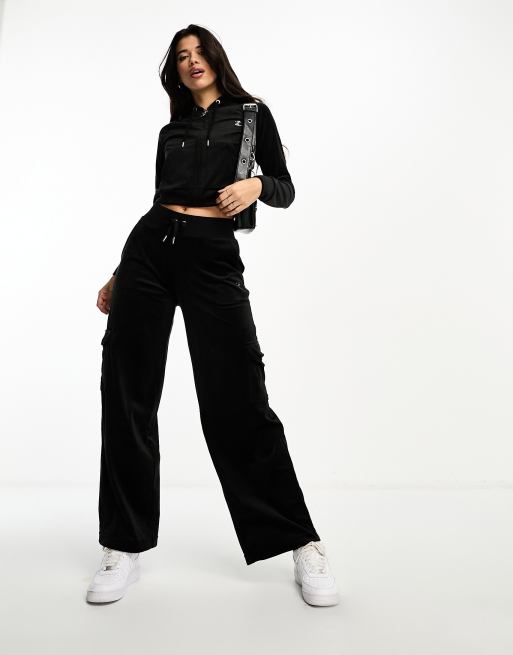 Juicy Couture velour wide leg cargo pants in black part of a set Very well made.