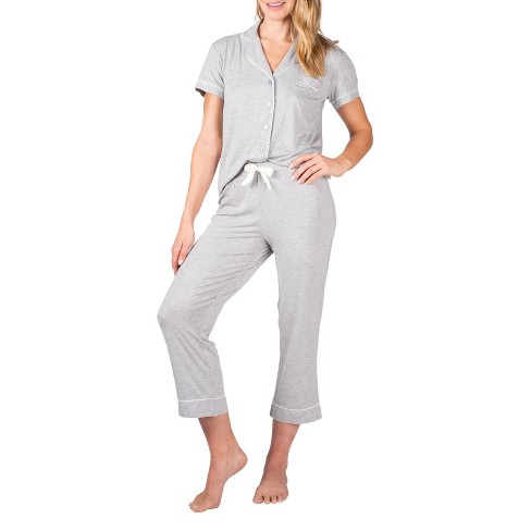 Blis Women s Notched Collar Short Sleeve Capri Pajama Set Heather Very well made.