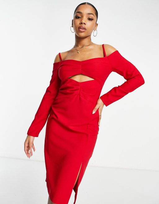 Trendyol long sleeve open shoulder dress in red ASOS Very well made.