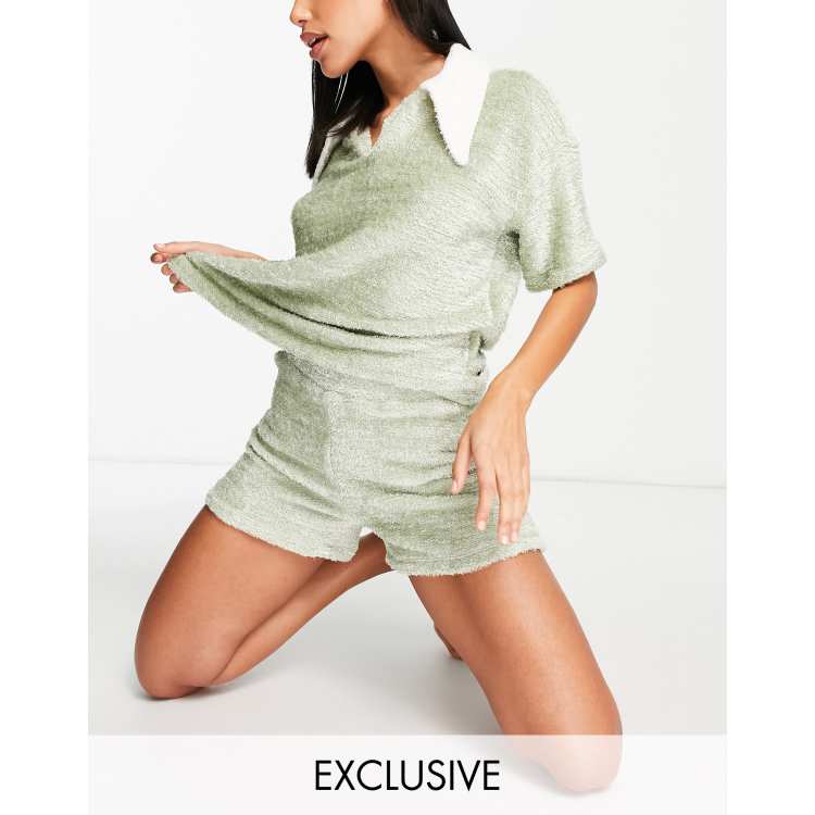 Only exclusive fluffy knit polo and short nightwear lounge set ASOS Very well made.