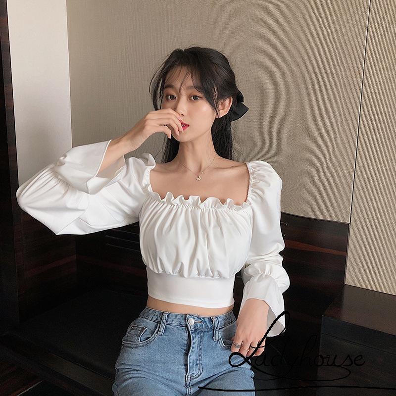LD Women s Off Shoulder Crop Top Long Sleeve Solid Color Ruffle Very well made.
