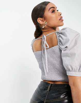 NA KD puff sleeve wrap blouse in light blue Very well made.