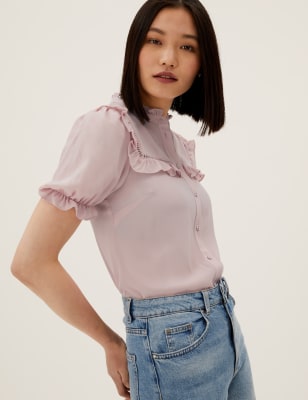 Frill Neck Puff Sleeve Blouse M S SA Very well made.