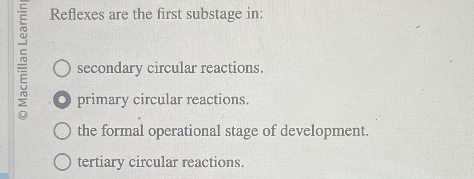 Solved Reflexes are the first substage in secondary circular Very well made.