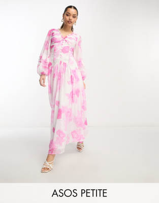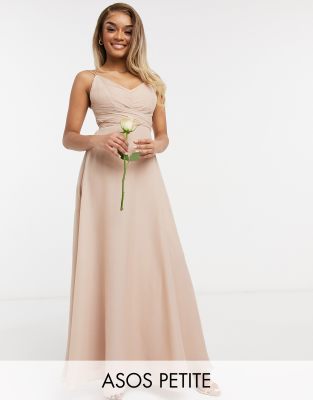 ASOS DESIGN Petite Robe longue caraco corsage fronc nou e la taille pour demoiselle d honneur Rose poudr Very well made.
