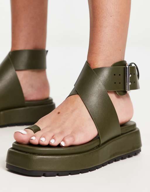ASOS DESIGN Falcon Sandales plates entredoigt Kaki Very well made.