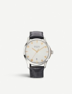 GUCCI YA126468 G Timeless silver and leather watch Selfridges Very well made.