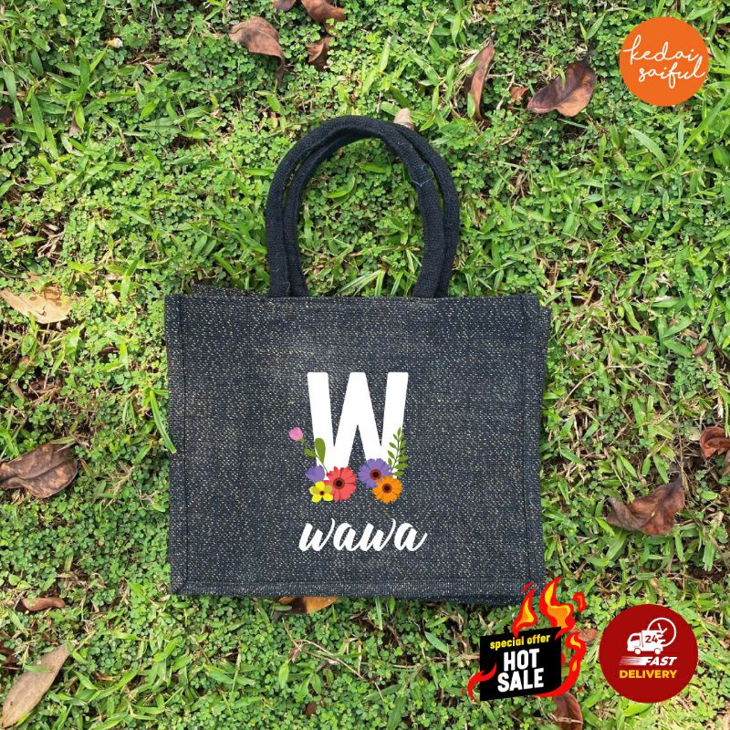 READY STOCK FAST DELIVERY Jute Bag Glitter Viral with Name Jute Very well made.