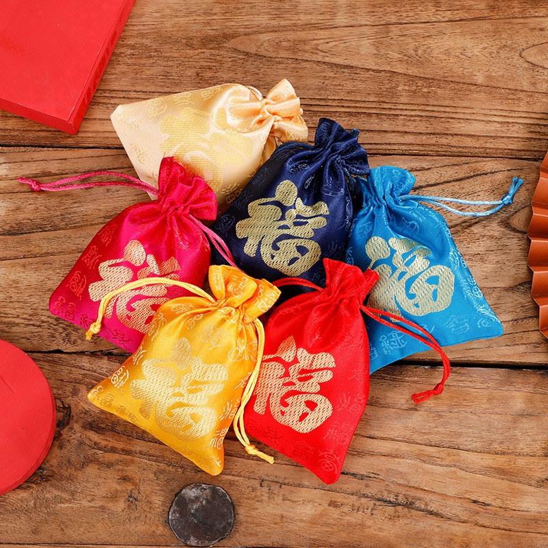 Chinese lucky bag hand stitched embroidered silk pouch suitable Very well made.