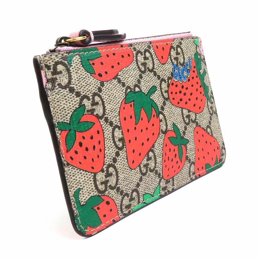 GUCCI GG Canvas Strawberry Coin Purse PVC Leather Beige Red Pink Very well made.