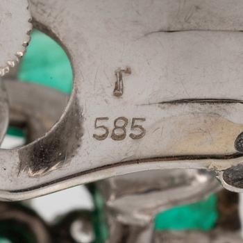 White gold emerald and round brilliant and baguette cut diamond Very well made.