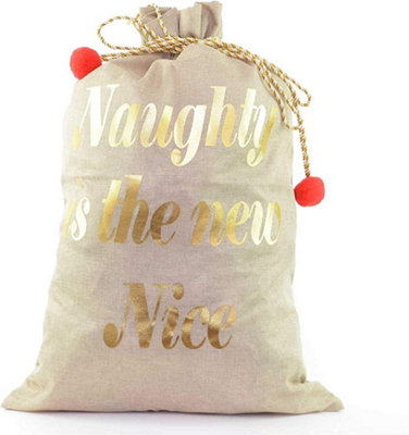 Large Premium Hessian Santa Sack Brown Stocking Bag Naughty Is The Very well made.