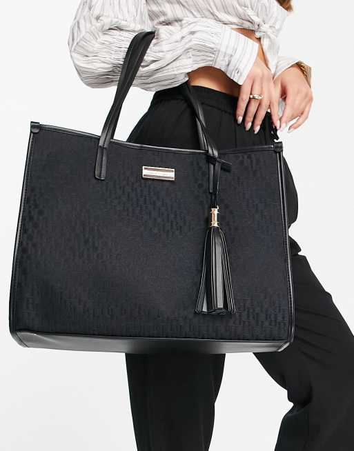 River Island jacquard monogram shopper bag in black Very well made.