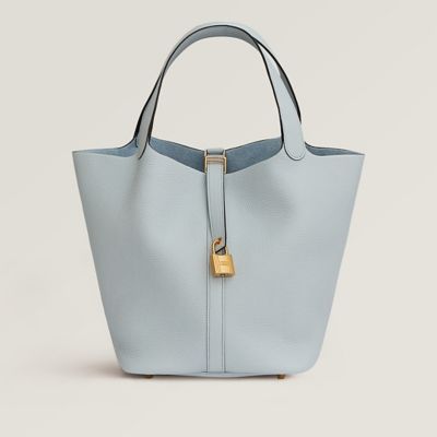 Picotin leather tote Herm s Blue in Leather 38798649 Very well made.