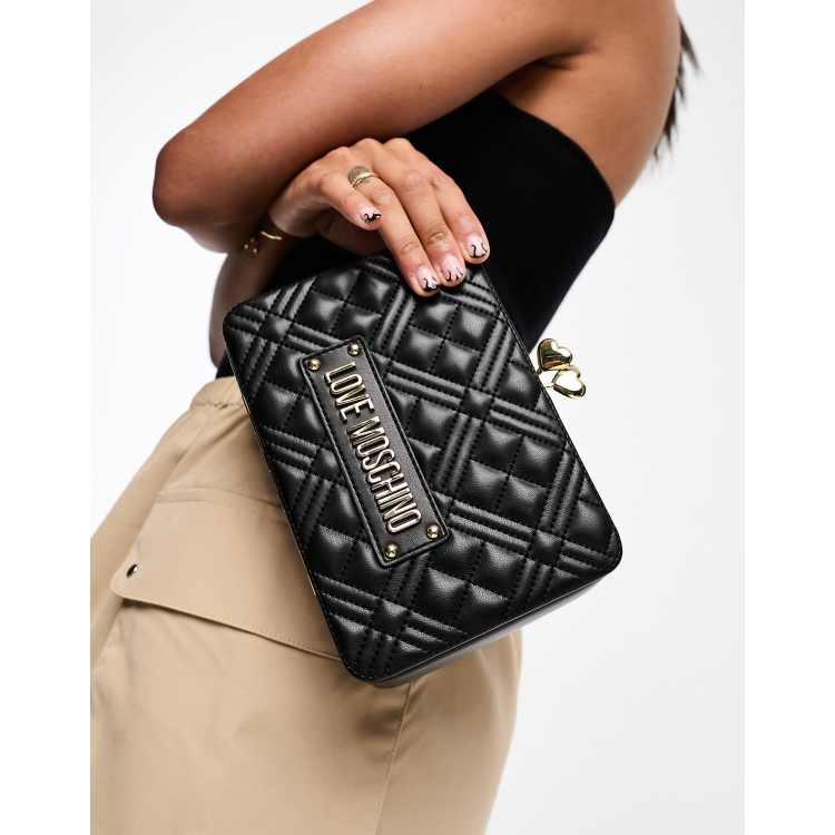 Love Moschino quilted box clutch with chain strap in black Very well made.