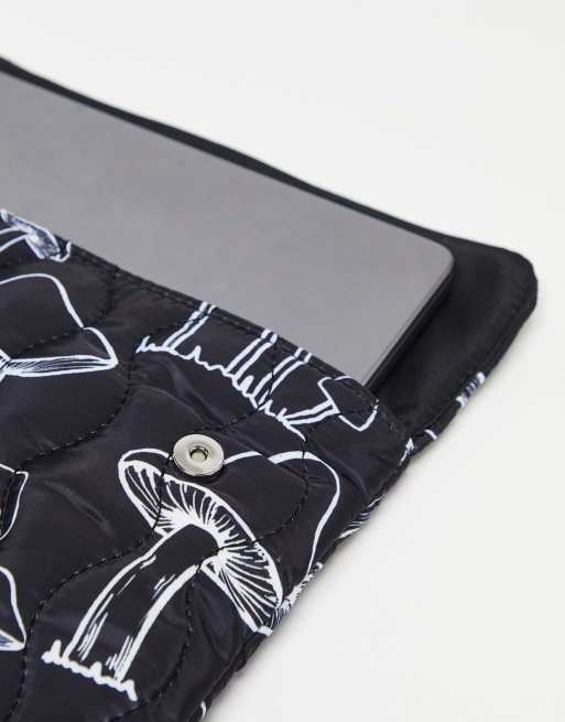 ASOS DESIGN quilted laptop sleeve in mushroom print in black Very well made.