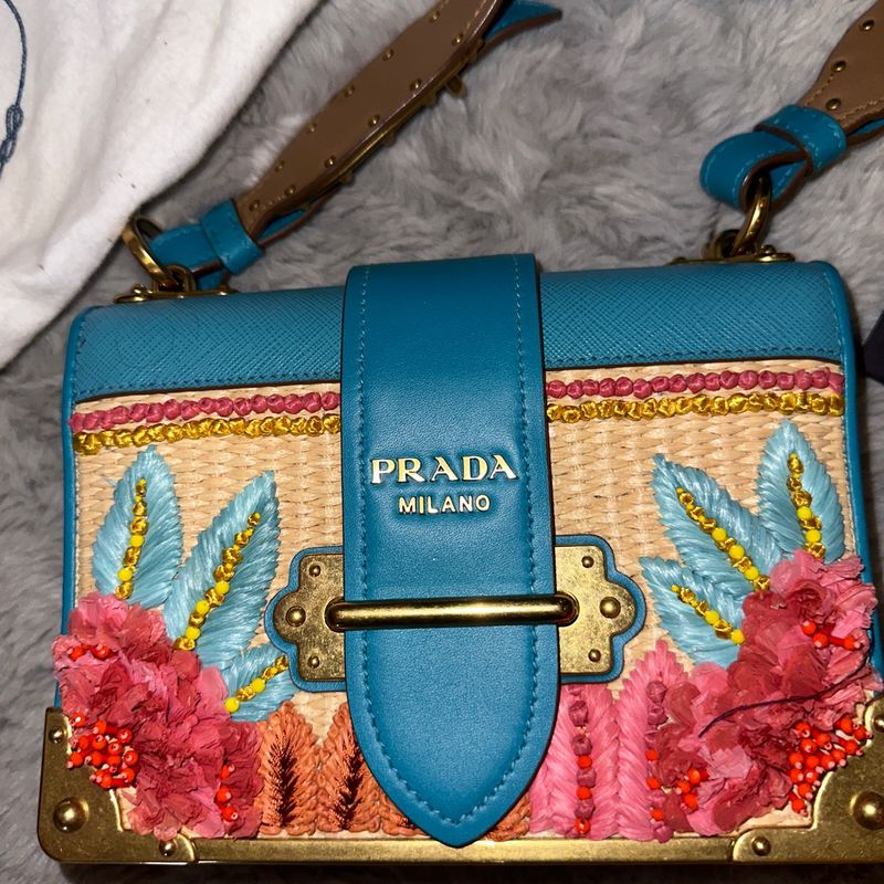 Bolsa Prada Cahier Straw Flloral Bolsa de Ombro Feminina Prada Very well made.