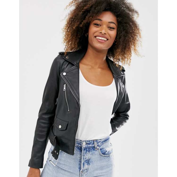 Stradivarius Blouson en cuir style motard Noir ASOS Very well made.