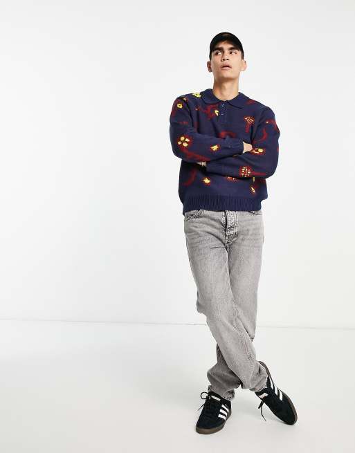 Obey Washer Pull en maille Bleu marine ASOS Very well made.