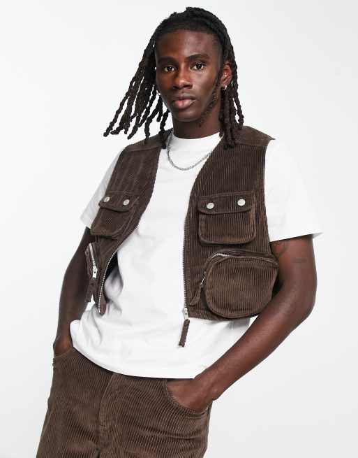 ASOS DESIGN co ord cropped gilet in brown corduroy with cargo detail Very well made.
