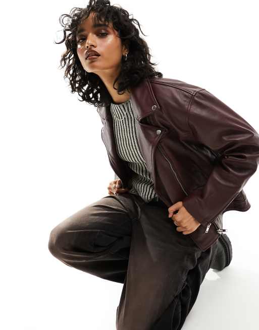 Bolongaro Trevor Veste en cuir oversize style motard Bordeaux Very well made.