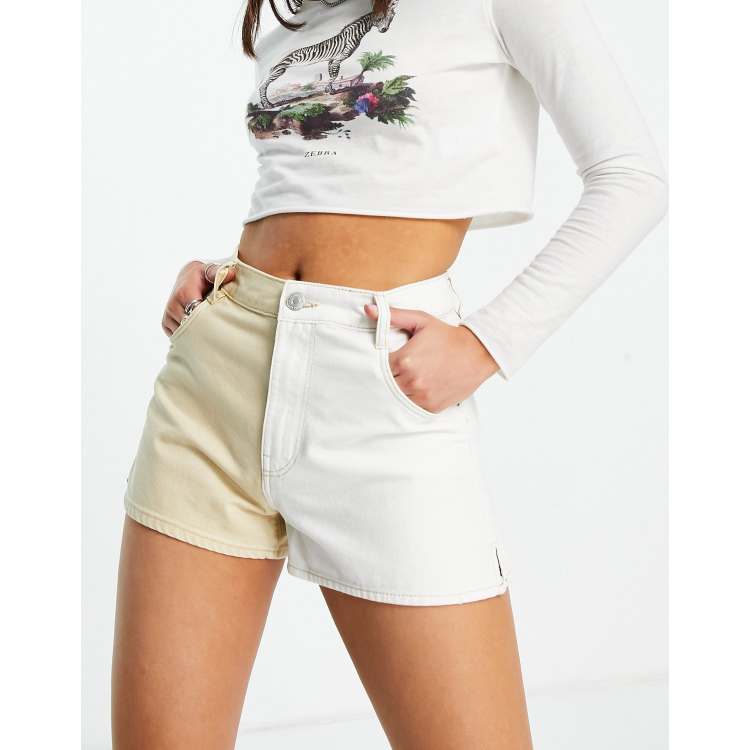 Bershka split wash denim short with contrast seam in camel and white Very well made.