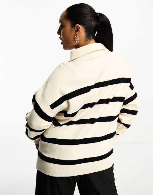 Vero Moda Curve zip pull sweater in cream mono stripe Very well made.