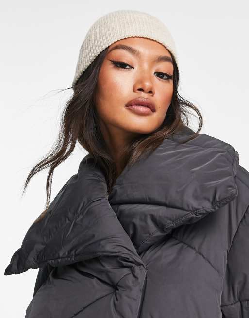 ASOS DESIGN Doudoune longue chevrons effet peau de p che Anthracite Very well made.