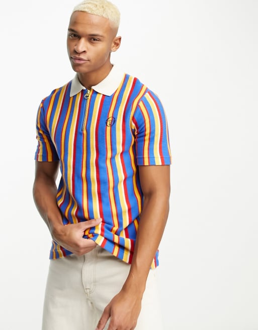 Sergio Tacchini Nencio knit zip polo in rainbow stripe Very well made.