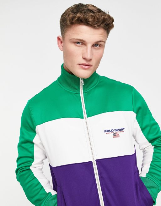 Polo Ralph Lauren Sport capsule colourblock tricot track jacket in green multi co ord Very well made.